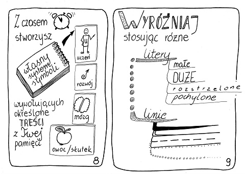 Dowiedziałam się jak sporządzać notatki, by szybciej i lepiej się uczyć. Sprawdziłam to na własnej skórze najpierw ucząc się do egzaminu na kursie języka angielskiego. W krótkim czasie zapamiętałam ogromną liczbę nowych słówek. Później zaczęłam tworzyć mapy myśli prezentacji, którą mam przedstawić na szkoleniu. Okazało się, że można tę burzę moich myśli oswoić i ułożyć w konkretne miejsca na kartce.